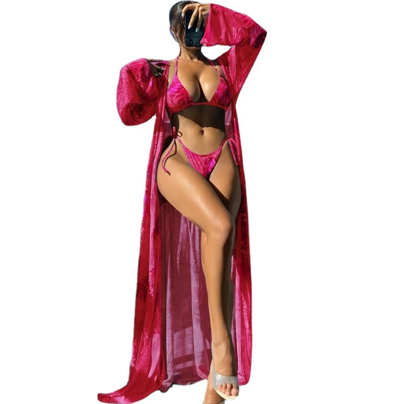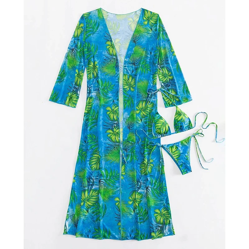 Women'S Printed Triangle Maillot De Bain Halter Bikini Bathing Suit Cover up 3 Piece Swimsuits